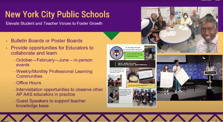 During the livestreamed session, Empowering Students: Collaborative Expansion of AP African American Studies, attendees heard from teachers and administrators about implementation strategies that helped expand their respective programs.
