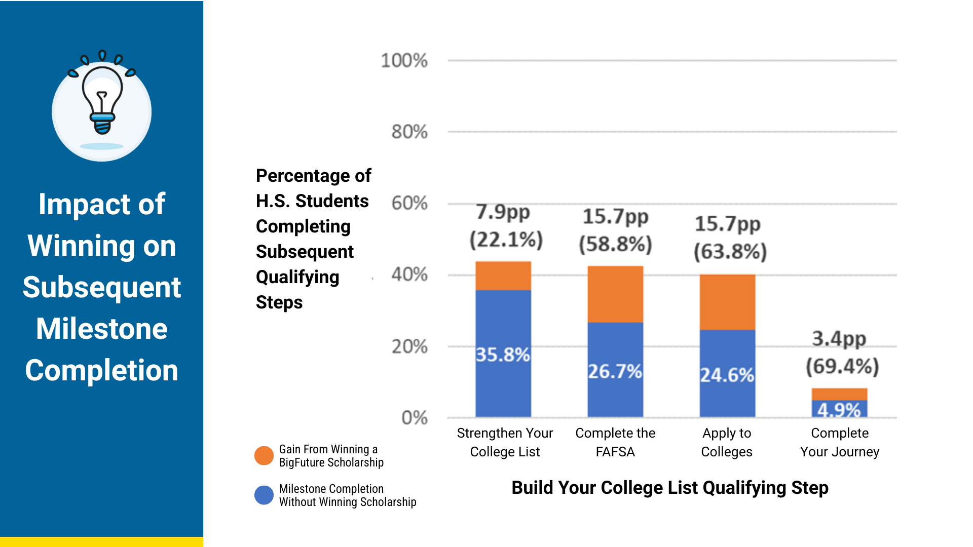 Because over 30,000 high school students have won scholarships to date, educators in schools across the country have seen firsthand what research confirms: Students benefit when they have a simple road map and encouragement along the way.