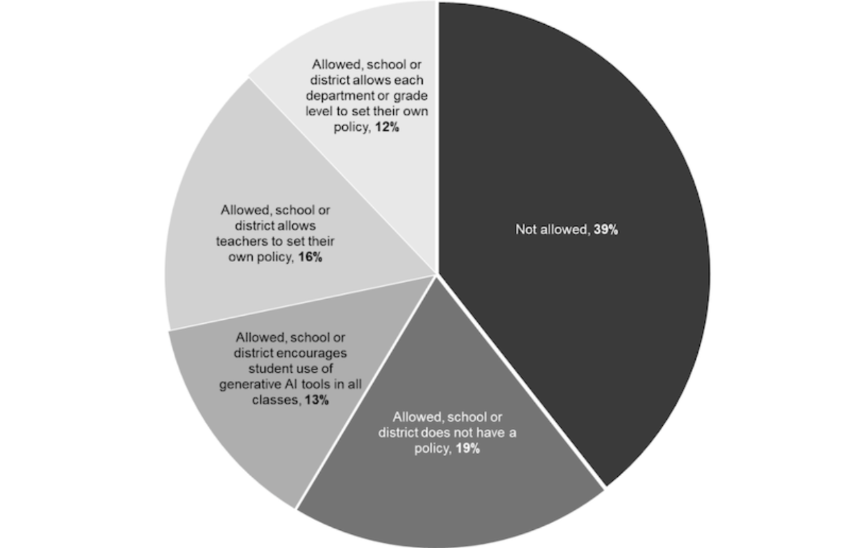 Consider this: While nearly all students are using gen AI tools, 1 in 5 high schools allow use but have no formal policy. Only 13% of schools encourage AI use in all classes, and nearly 40% ban it outright. Even when policies exist, nearly half of schools delegate decisions to individual teachers or departments. This creates a patchwork of approaches that leaves students navigating different rules depending on the classroom.