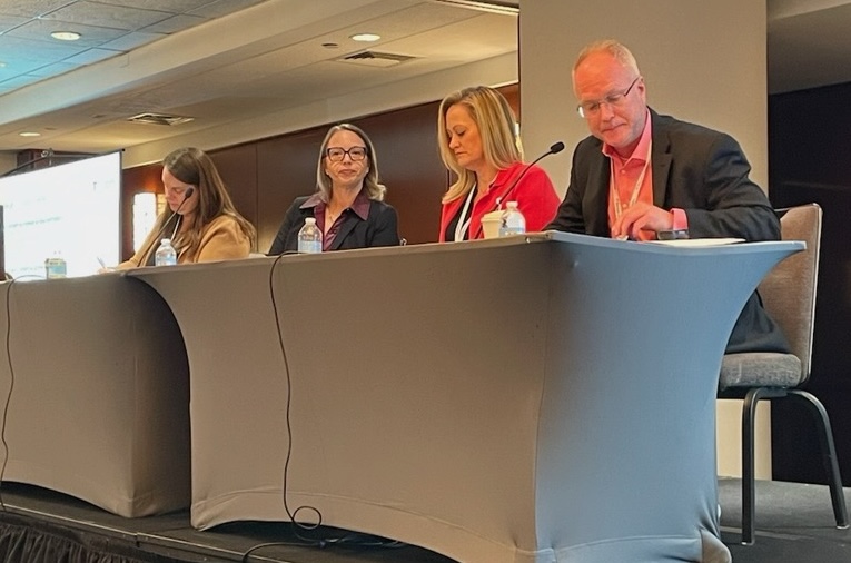 From L to R. Marjie Betley, Dr. Rosanna Mucetti, Tracy Dorland, and Boyd Bradshaw share innovative strategies in helping to increase access to college admissions resources for students in rural, small town, and underserved urban school districts at Forum